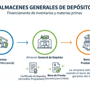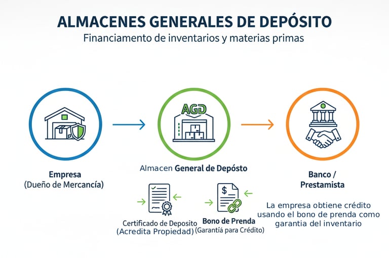¿Cómo auxilian al crédito? Permiten a la empresa obtener financiamiento usando su propio inventario como garantía. El banco o prestamista acepta el "Bono de Prenda" con la seguridad de que la mercancía está resguardada profesionalmente en el almacén.